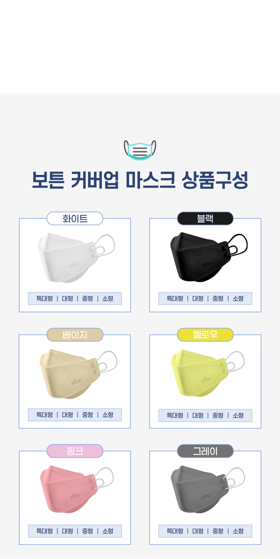 보튼 커버업 (100매) 끈조절 KF94 컬러 황사방역마스크SALEBESTMD