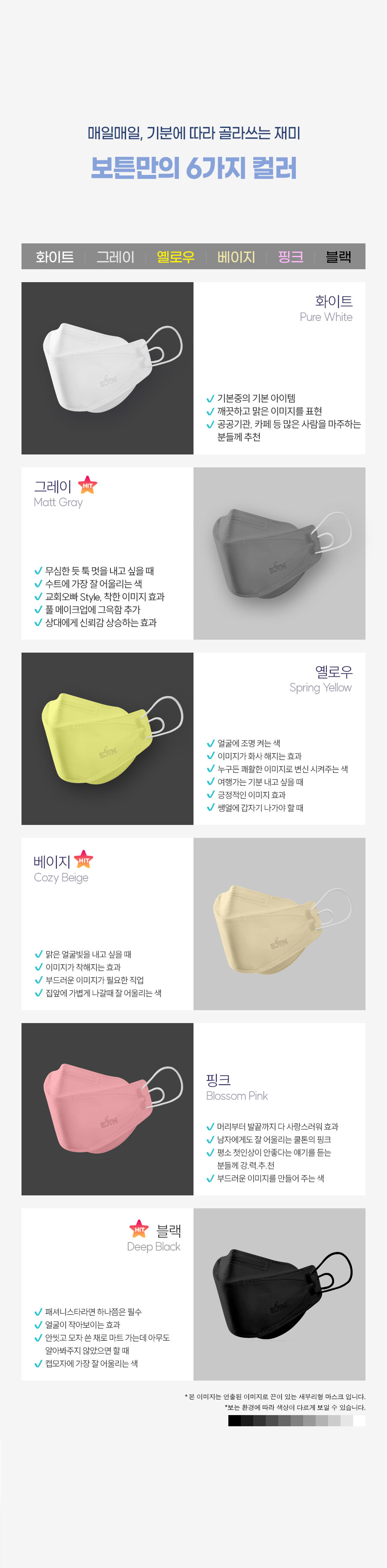 BOTN KF94 컬러 황사마스크